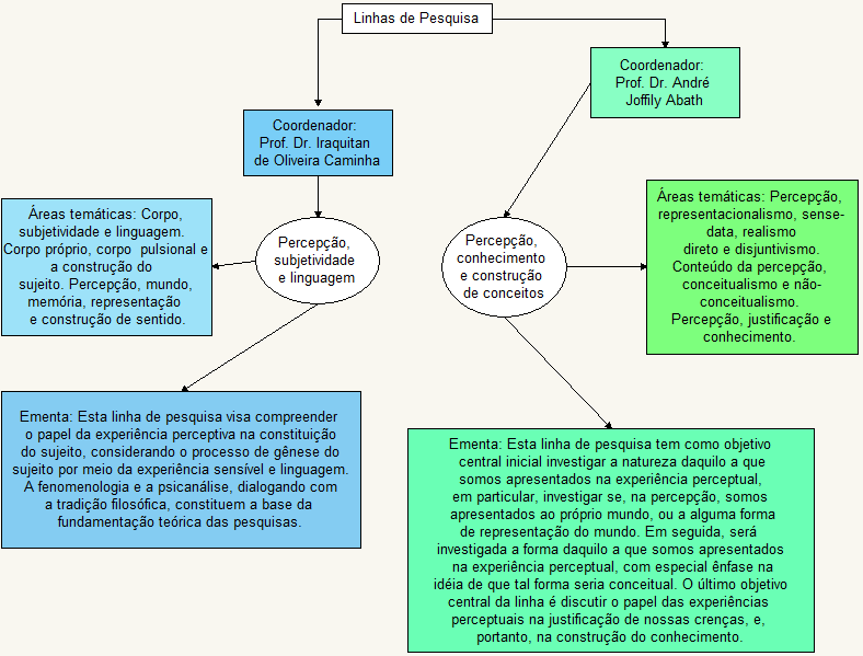 O objeto de estudo do Grupo de Estudo sobre Filosofia da Percepção se volta particularmente para examinar a percepção, considerando a subjetividade, a linguagem, o conhecimento e construção conceitual.